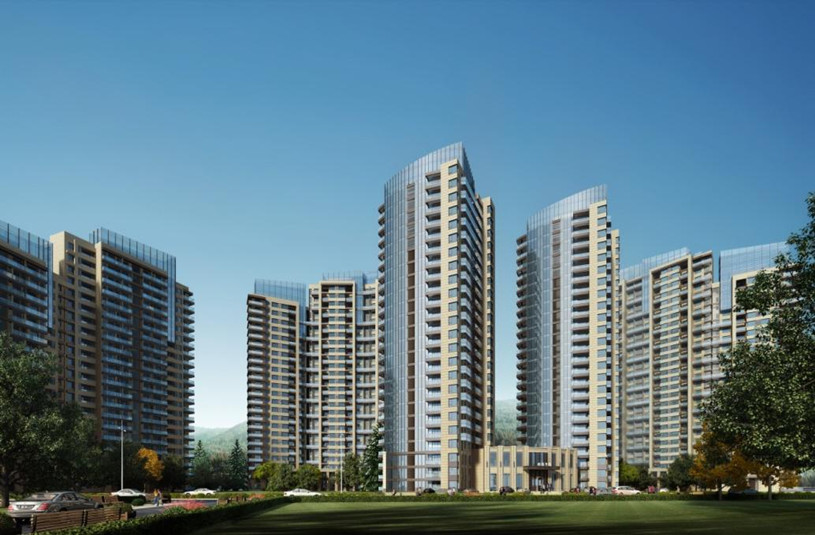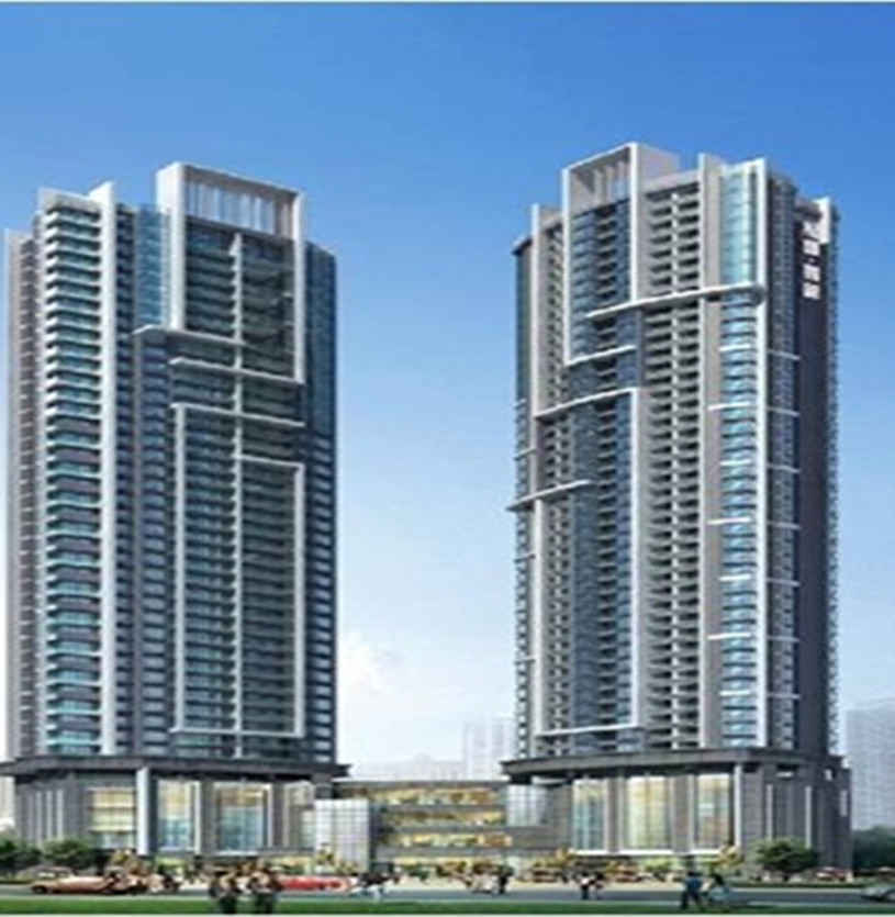 本工程裙楼幕墙设计以浅灰色干挂花岗岩石材为主,配搭灰色铝框本体灰玻璃幕墙及铝窗,首层设有玻璃肋幕墙及轻钢玻璃雨棚。塔楼外墙安装铝合金门窗及铝合金幕墙窗,3, 4号楼34层以上局部位置设有玻璃幕墙。